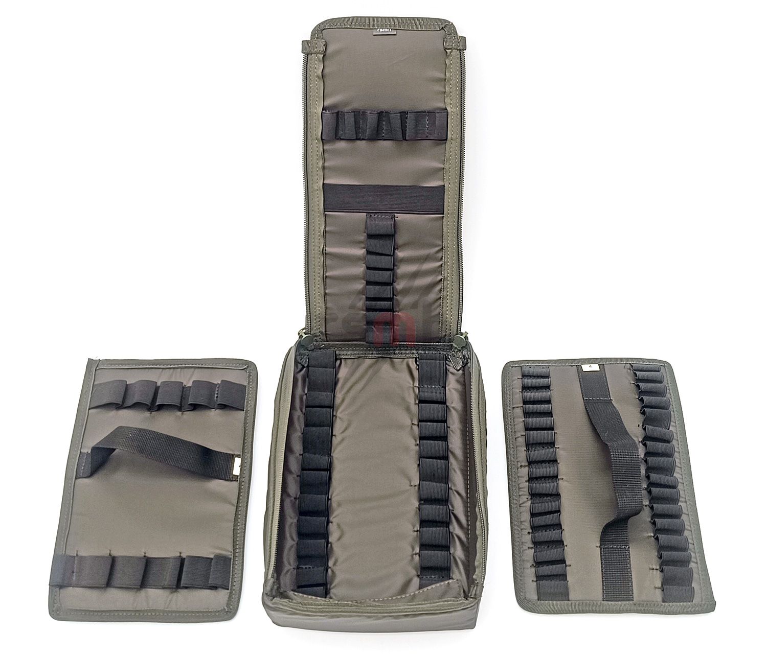 В комплекті дві панелі. На одній стороні розташовані резинки для розміщення ампул. На зворотній стороні кожної панелі кишені для дезінфікуючих серветок та іншого дрібного приладдя. Кишені мають зворотній клапан який не дає випадати дрібним речам. Клапан не має фіксації липучкою і тримається лише завдяки ущільнювачу що повертає його у початковий стан.