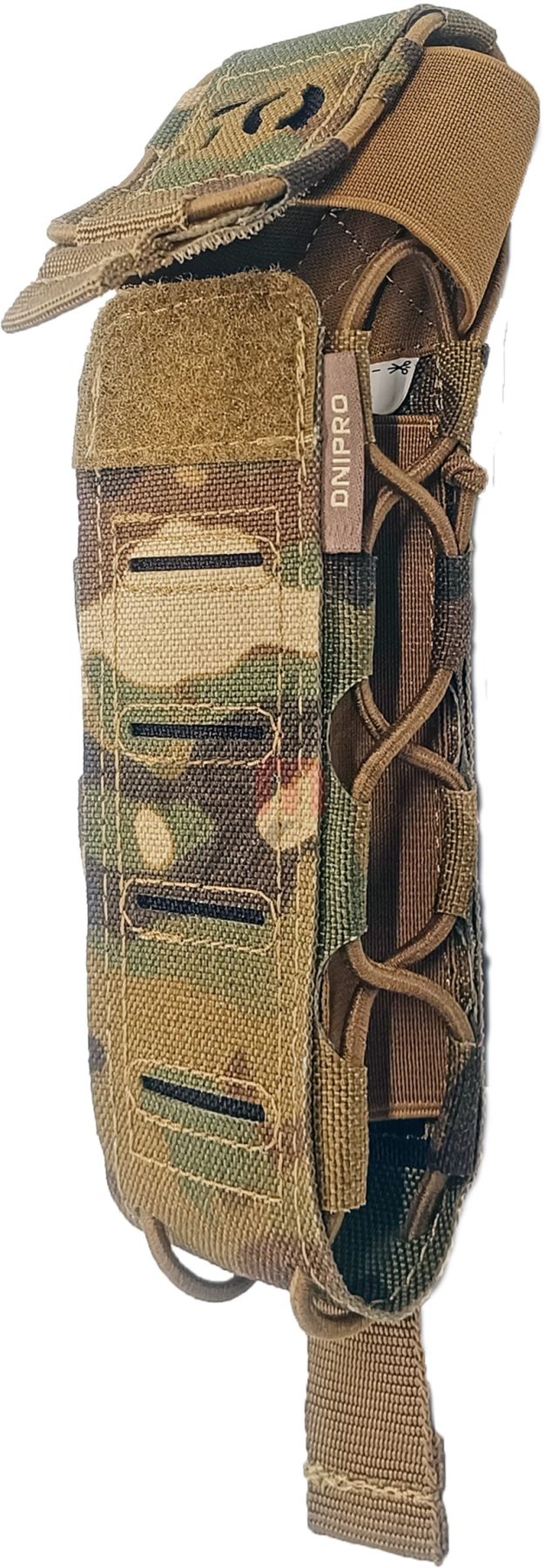 Підсумок «DNIPRO» - це ідеальне рішення для зберігання турнікетів на вашому тактичному спорядженні. Виконаний з високоякісних матеріалів, він гарантує надійність та довговічність. Бічні стінки з еластичних стрічок дозволяють зберігати не тільки кровоспинні джгути, а й інші предмети такого ж розміру, що робить його універсальним аксесуаром. Гумова стрічка-плетення з боків забезпечує додаткову фіксацію аксесуарів, що знаходяться всередині. Цей підсумок легко та зручно кріпиться до основного спорядження, що робить його незамінним елементом вашого тактичного екіпірування.