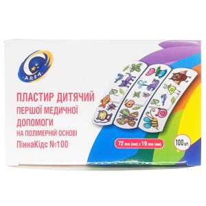 Пластир дитячий першої медичної допомоги на полімерній основі ПіннаКідс 72мм x 19мм (100шт.)