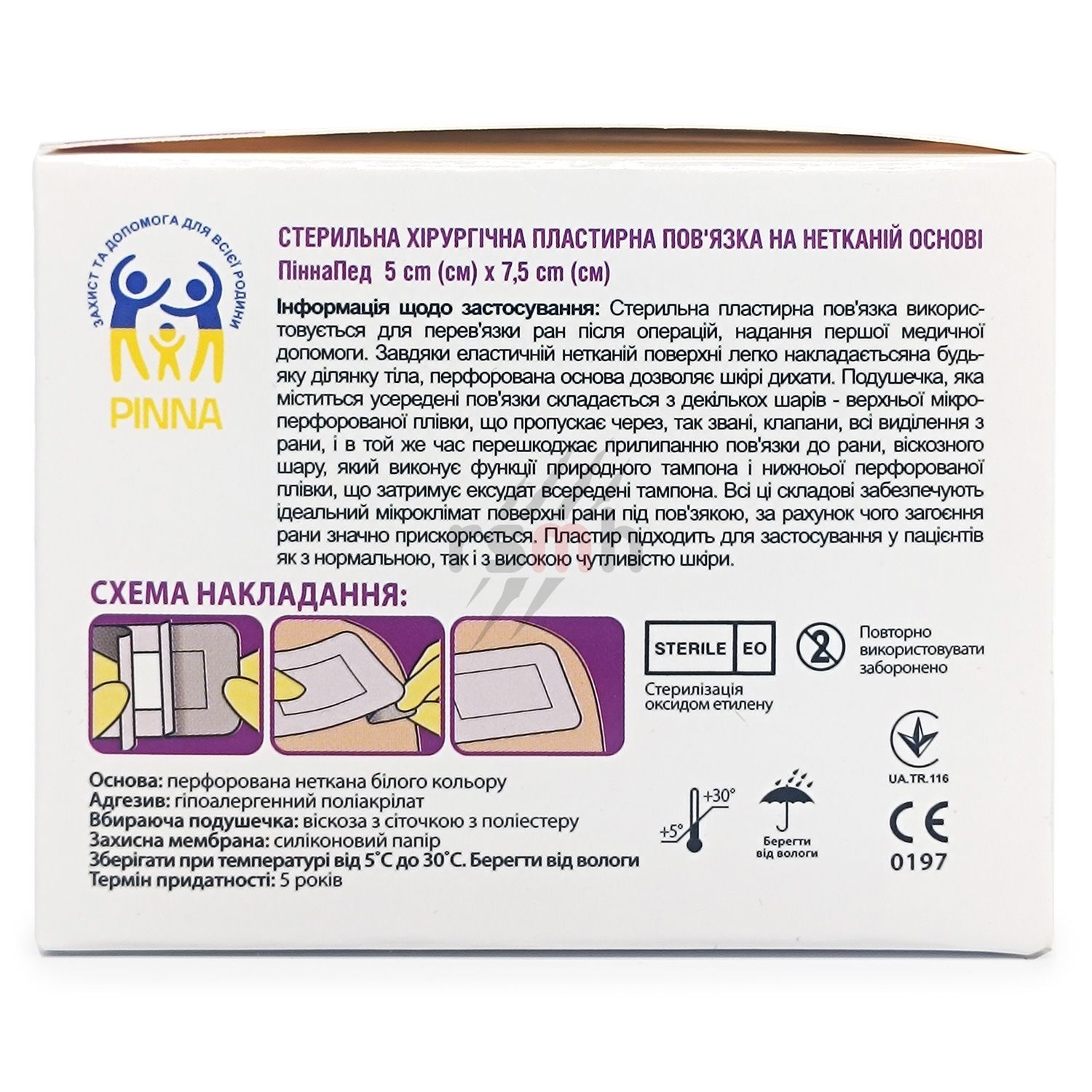 Стерильна хірургічна пластирна пов'язка на нетканій основі ПіннаПед 5см х 7,5см (2шт.)