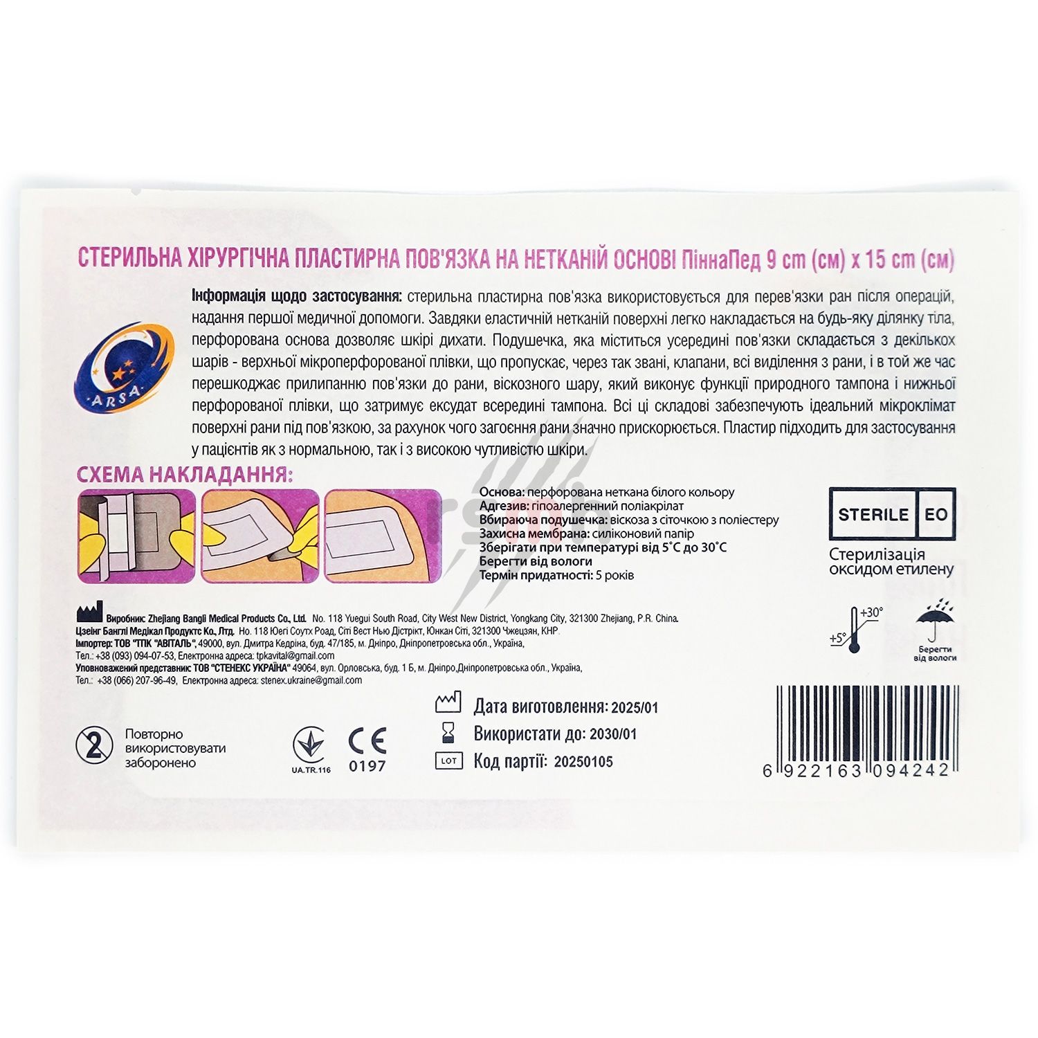 Стерильна хірургічна пластирна пов'язка на нетканій основі ПіннаПед 9см х 15см (1шт.)