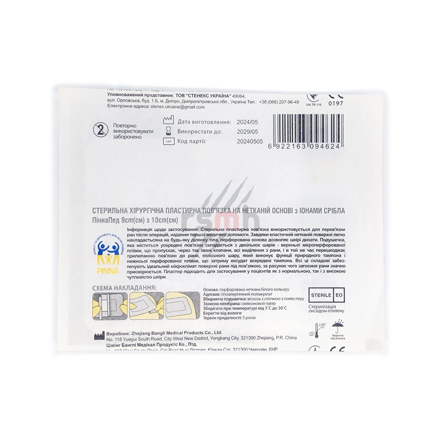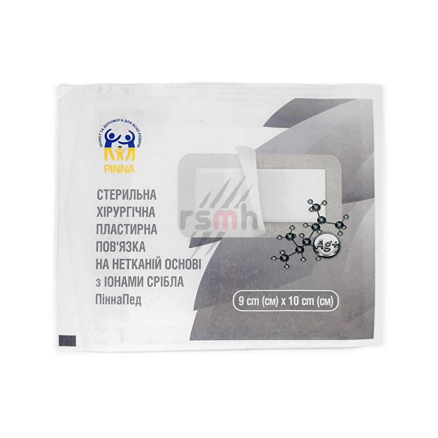 Стерильна хірургічна пластирна пов'язка на нетканій основі з іонами срібла ПіннаПед 9см х 10см (1шт.)