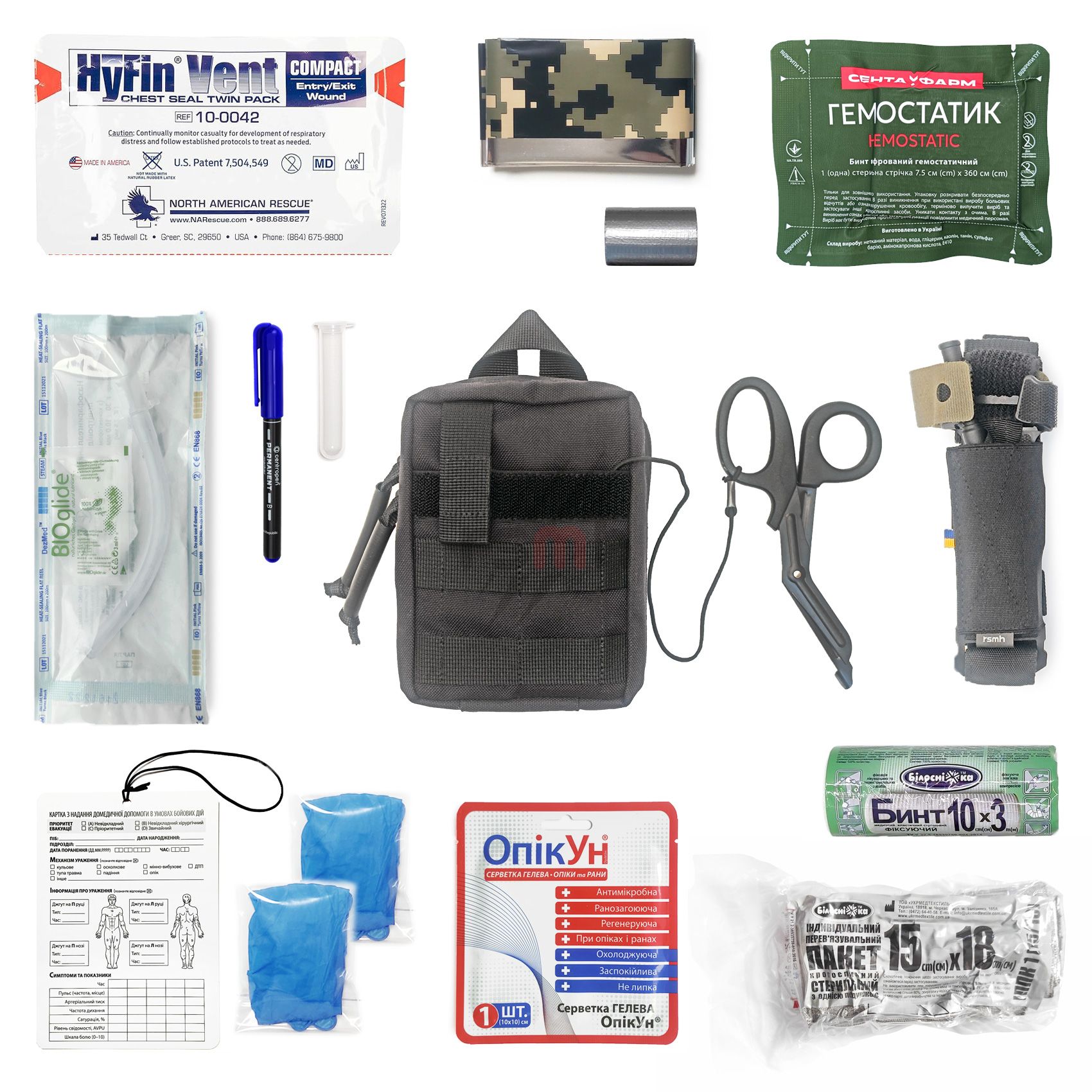 Надкомпактна аптечка, укомплектована засобами першої необхідності для надання домедичної допомоги у випадку проникних та інших бойових поранень і оснащена спереду і ззаду системою MOLLE і безшумною системою швидкого скидання. Не візуалізується приладами нічного бачення.