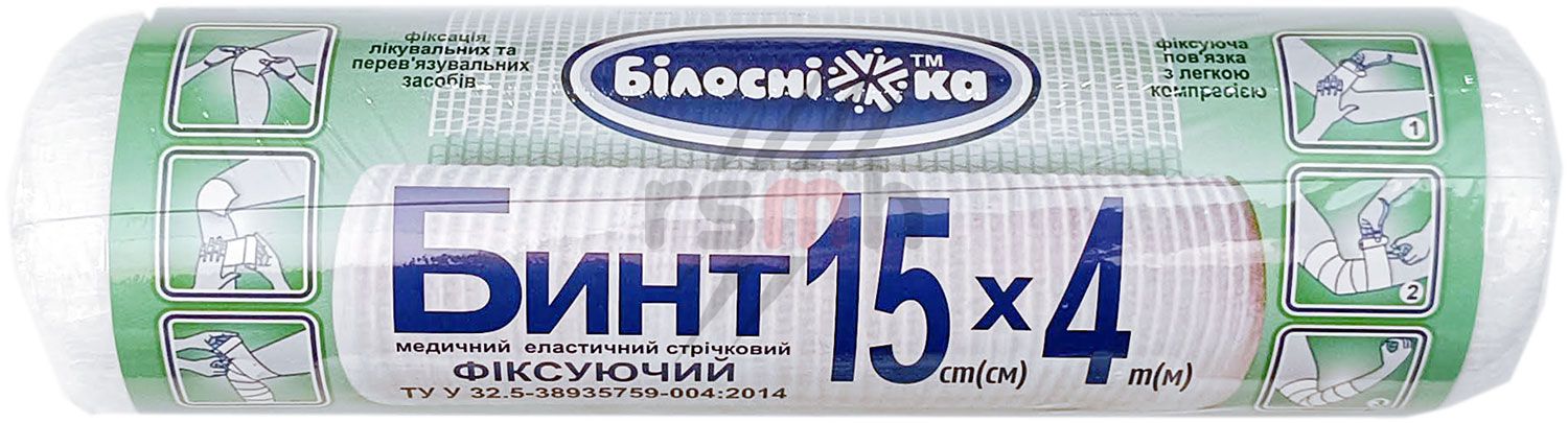 Бинт фіксуючий еластичний 15 см × 4 м, Білосніжка