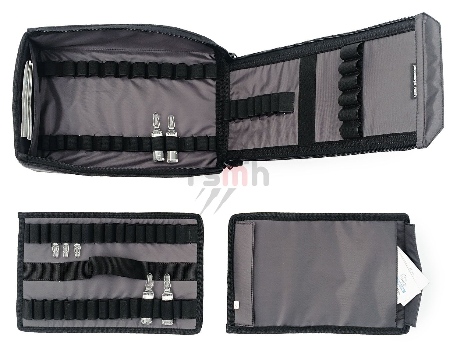 В комплекті дві панелі. На одній стороні розташовані резинки для розміщення ампул. На зворотній стороні кожної панелі кишені для дезінфікуючих серветок та іншого дрібного приладдя. Кишені мають зворотній клапан який не дає випадати дрібним речам. Клапан не має фіксації липучкою і тримається лише завдяки ущільнювачу що повертає його у початковий стан.