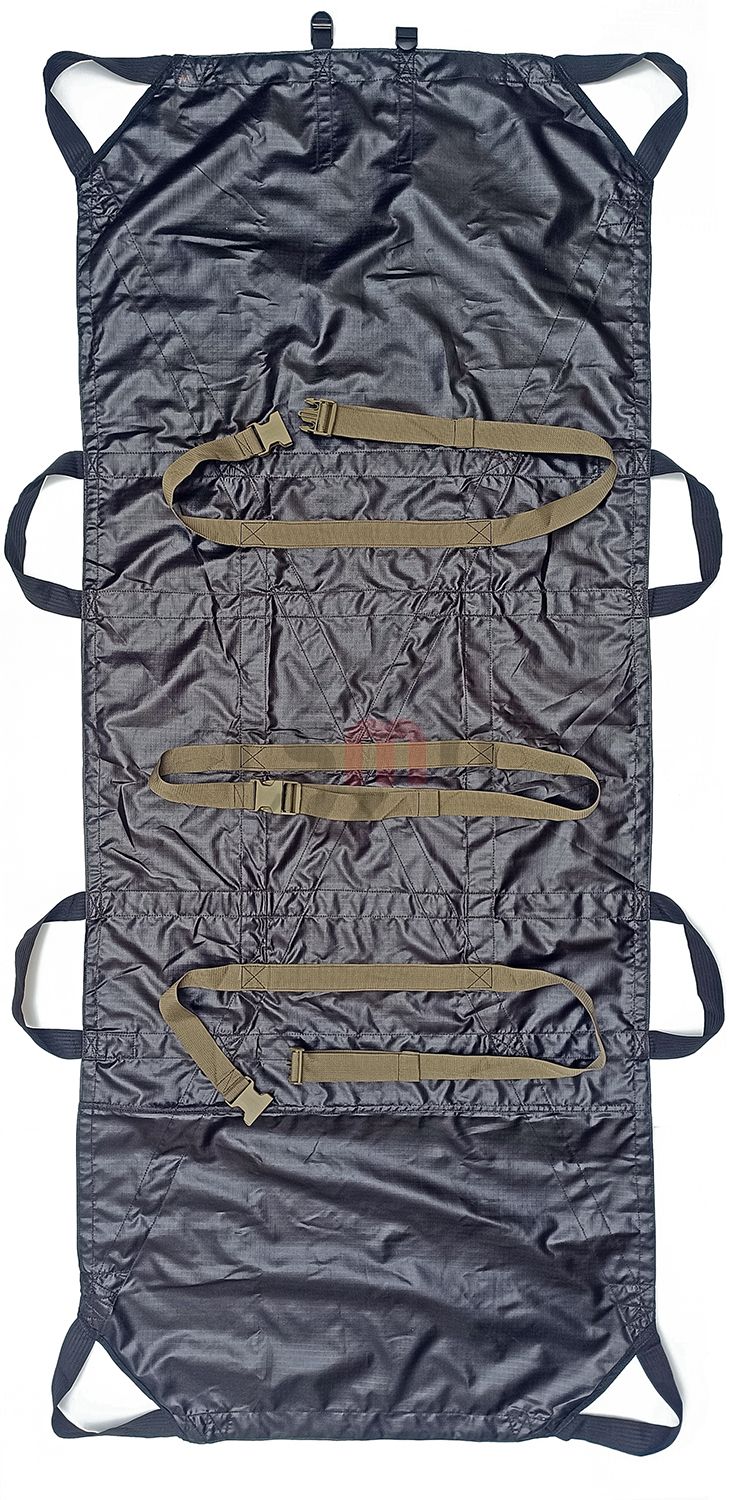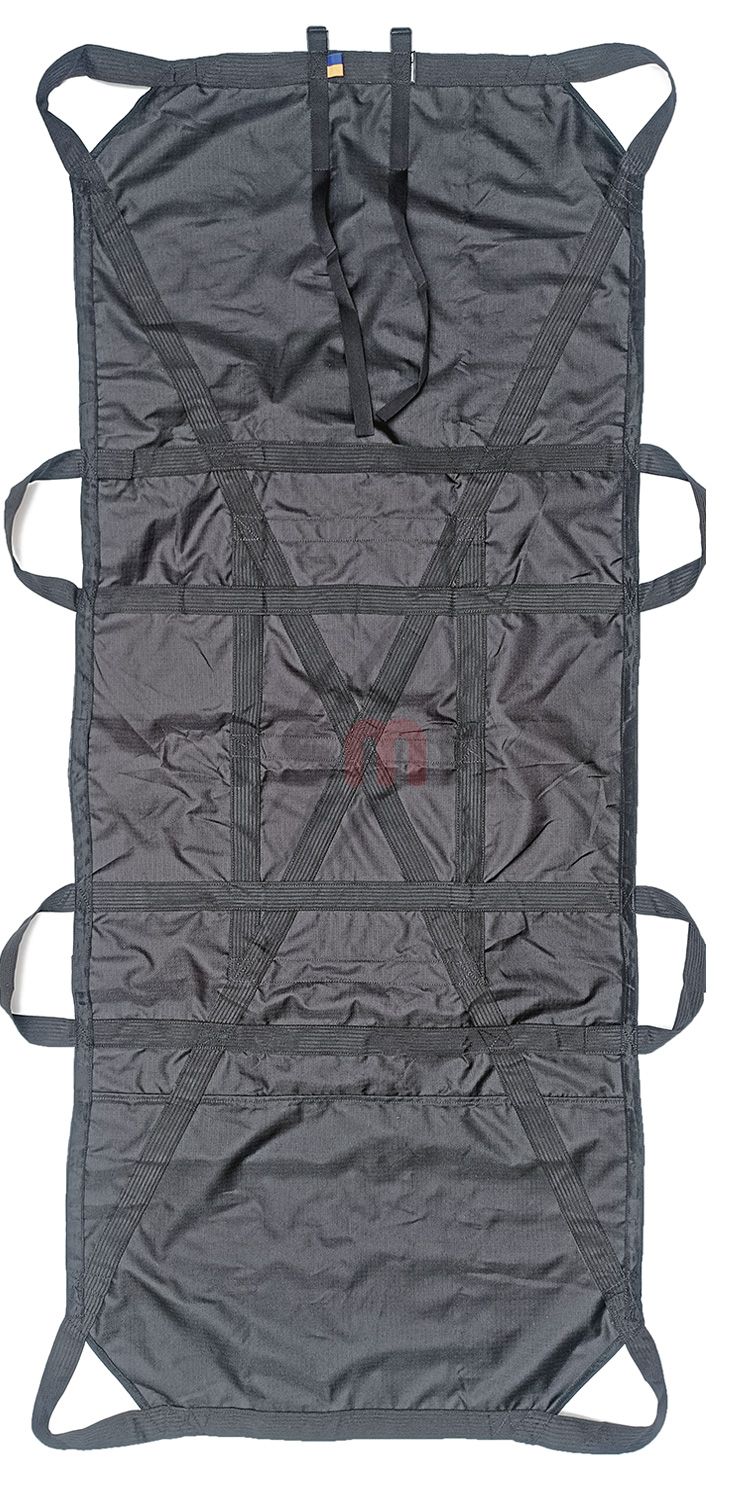 Ноші безкаркасні, тканина Оксфорд ріп-стоп 215 г/м², колір чорний, койот. Стропа 40 мм чорна, прошита навхрест, що забирає навантаження із тканини на стропу.