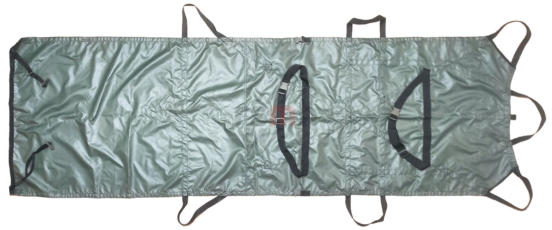 Ноші тактичні з двома ременями фіксації пораненого в районі грудей та ніг. Довжина кожного ременя 145 см, ширина паска 40 мм. Третій ремень знаходиться ще нижче зі зворотної сторони нош і призначений для фіксації ніг у ношах (принцип кокона) при важкому пораненні ніг. Це також зручно якщо "нижні" ручки тримає одна людина. Довжина нош регулюється кишенею для ніг від 185 см до 204 см, ширина полотна 83 см.