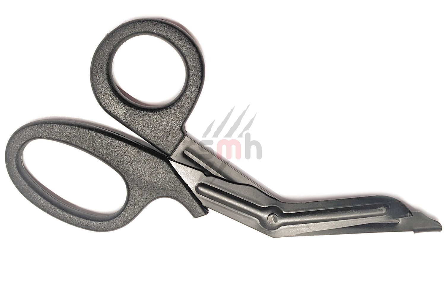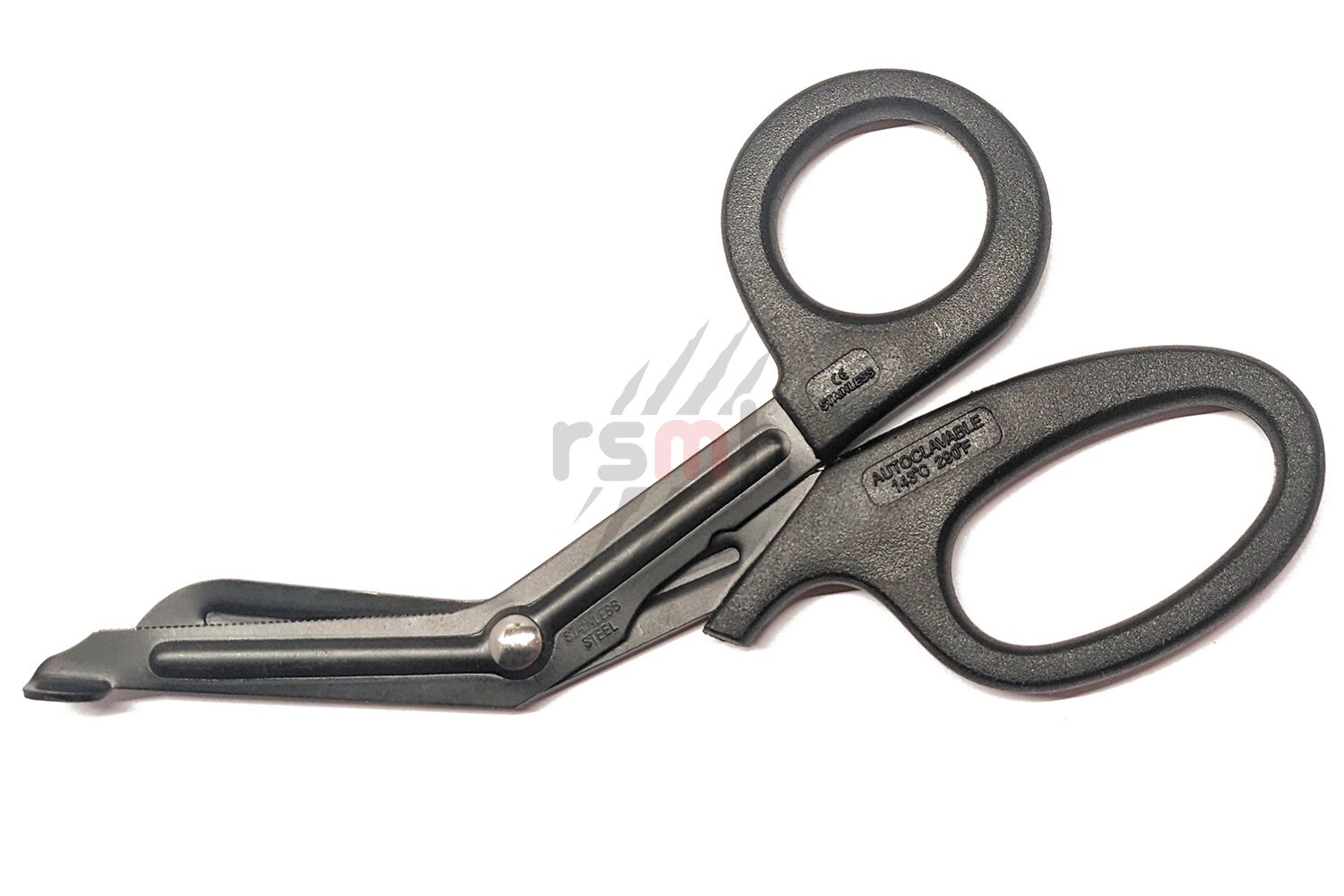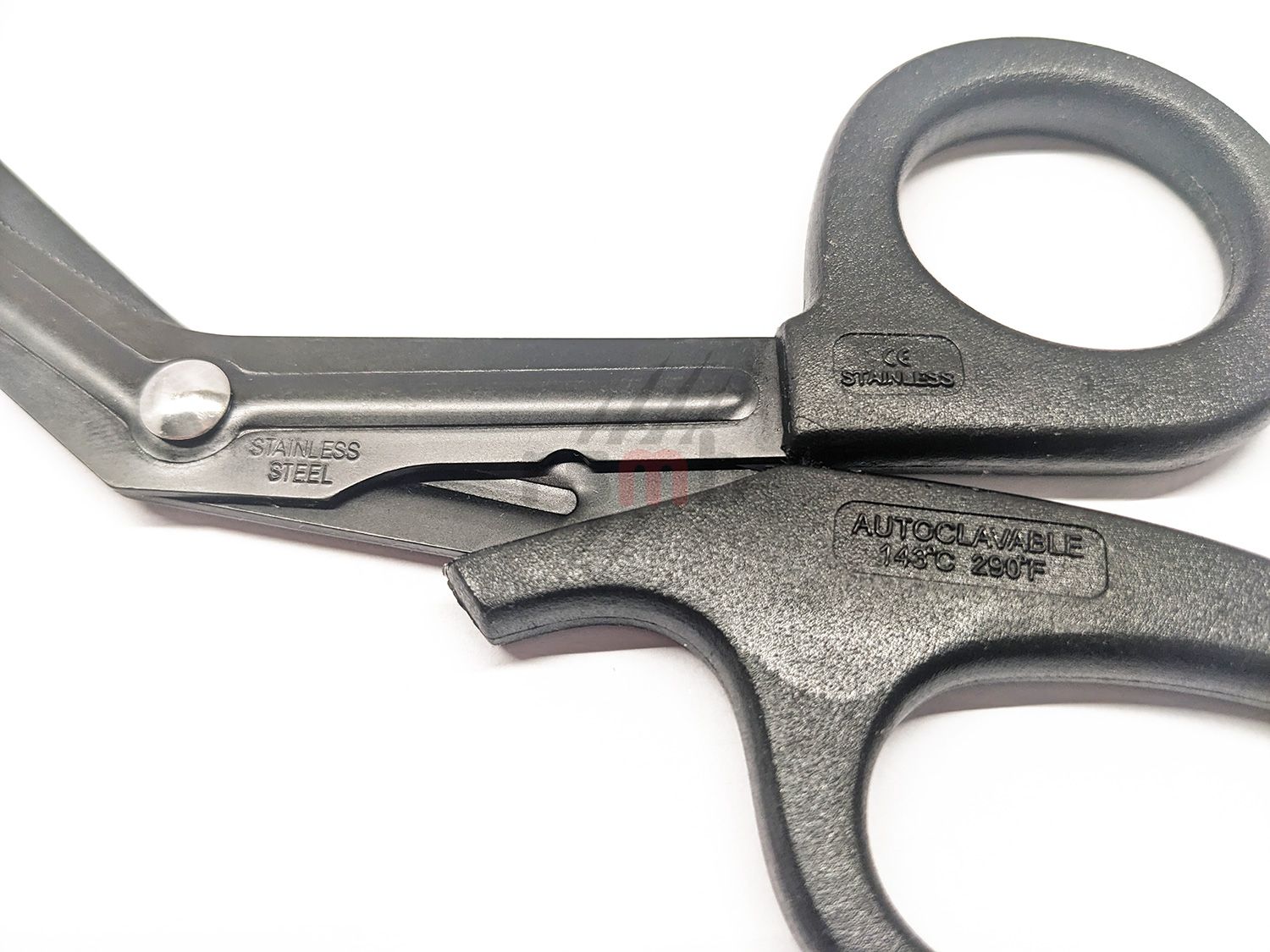 Ці ножиці атравматичні завдяки закругленим кінцям лез та вигину на одному лезі, що запобігає пошкодженню шкіри при розрізанні одягу.