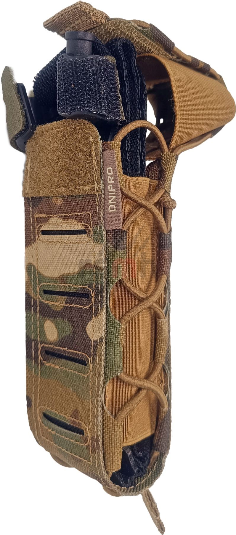 Підсумок «DNIPRO» - це ідеальне рішення для зберігання турнікетів на вашому тактичному спорядженні. Виконаний з високоякісних матеріалів, він гарантує надійність та довговічність. Бічні стінки з еластичних стрічок дозволяють зберігати не тільки кровоспинні джгути, а й інші предмети такого ж розміру, що робить його універсальним аксесуаром. Гумова стрічка-плетення з боків забезпечує додаткову фіксацію аксесуарів, що знаходяться всередині. Цей підсумок легко та зручно кріпиться до основного спорядження, що робить його незамінним елементом вашого тактичного екіпірування.