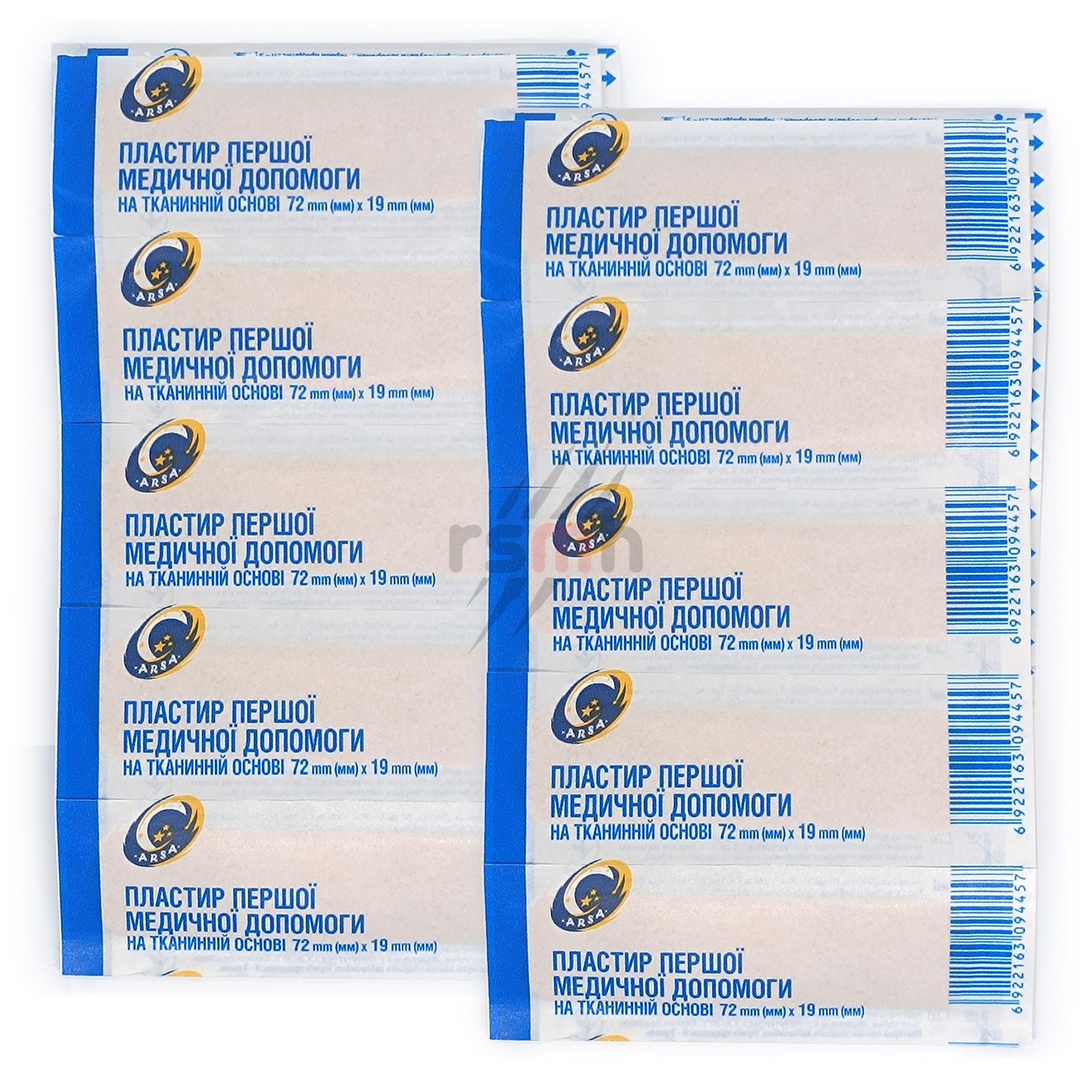Пластир першої медичної допомоги на тканинній основі ARSA 72мм x 19мм (10шт.)