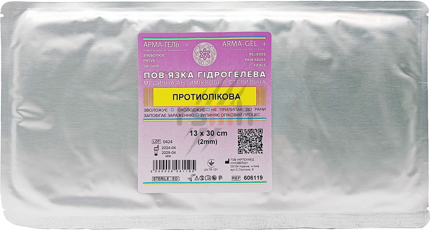 Пов`язка гідрогелева АРМА-ГЕЛЬ+ Протиопікова 13×30 см (2мм)