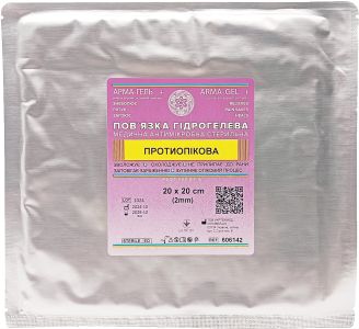 Пов`язка гідрогелева АРМА-ГЕЛЬ+ Протиопікова 20×20 см (2мм)