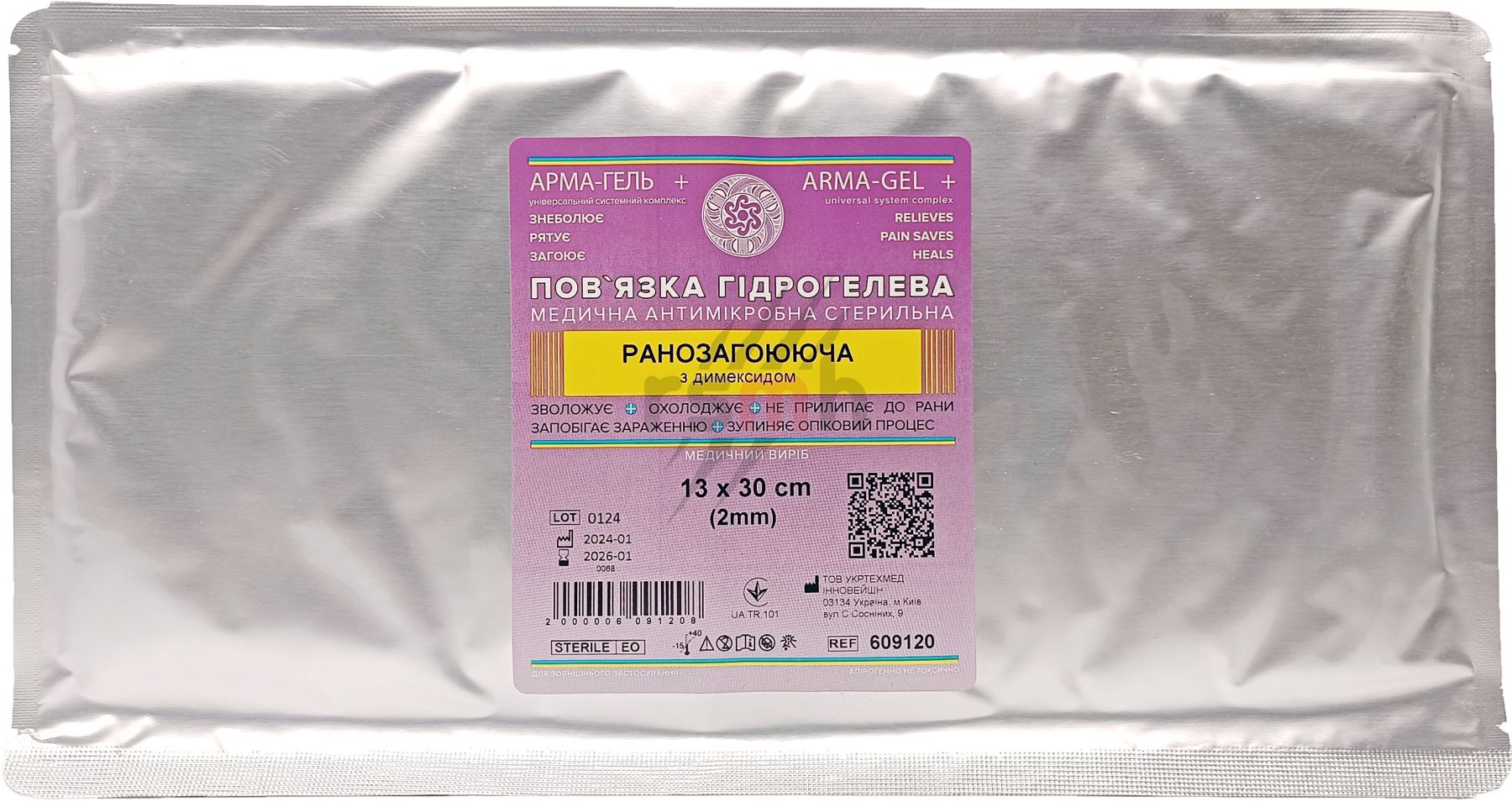 Пов`язка гідрогелева АРМА-ГЕЛЬ+ Ранозагоююча з димексидом 13×30 см (2мм)