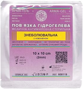 Пов`язка гідрогелева АРМА-ГЕЛЬ+ Знеболювальна з новокаїном 10×10 см (2мм)