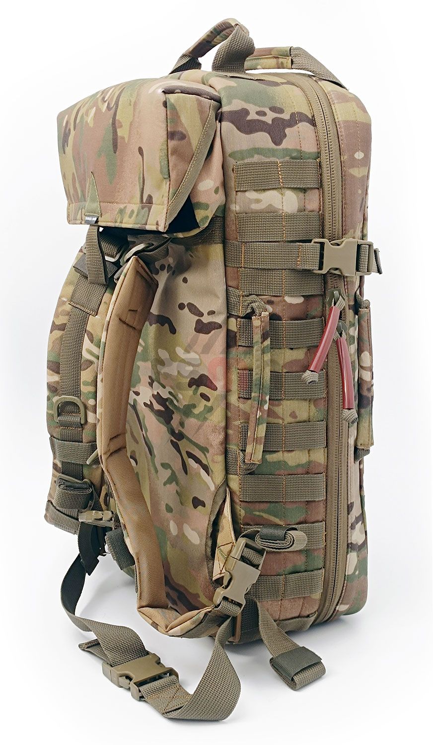 Універсальний рюкзак бойового медика на 28 л, оснащений системою MOLLE спереду й по боках. Не візуалізується приладани нічного бачення. Конструкція рюкзака передбачає можливість його використання з допомогою лише однієї руки, Ергономічні м'які лямки. Зовнішня кишеня швидкого доступу 28х11х5 см 1,5 літри