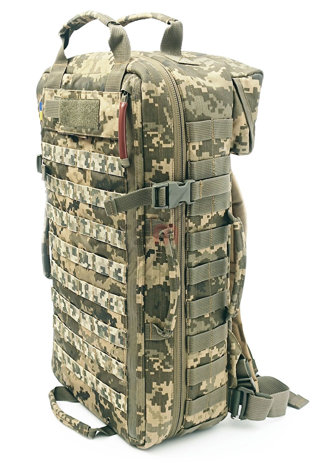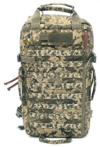 Універсальний рюкзак бойового медика на 28 л, оснащений системою MOLLE спереду й по боках. Не візуалізується приладани нічного бачення. Конструкція рюкзака передбачає можливість його використання з допомогою лише однієї руки, Ергономічні м'які лямки. Зовнішня кишеня швидкого доступу 28х11х5 см 1,5 літри