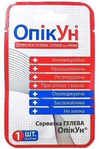 Гідрогелеві протиопікові пов'язки та серветки «ОпікУн»®, виробництва компанії «Зентекс» – ефективний засіб першої допомоги при опіках і відкритих ранах. Крім того, гелеві антимікробні пов'язки та серветки «ОпікУн»® є дієвим ранозагоювальним засобом при лікуванні опіків різних ступнів тяжкості, післяопераційних ран та пролежнів, а також при трофічних виразках та діабетичній стопі.
