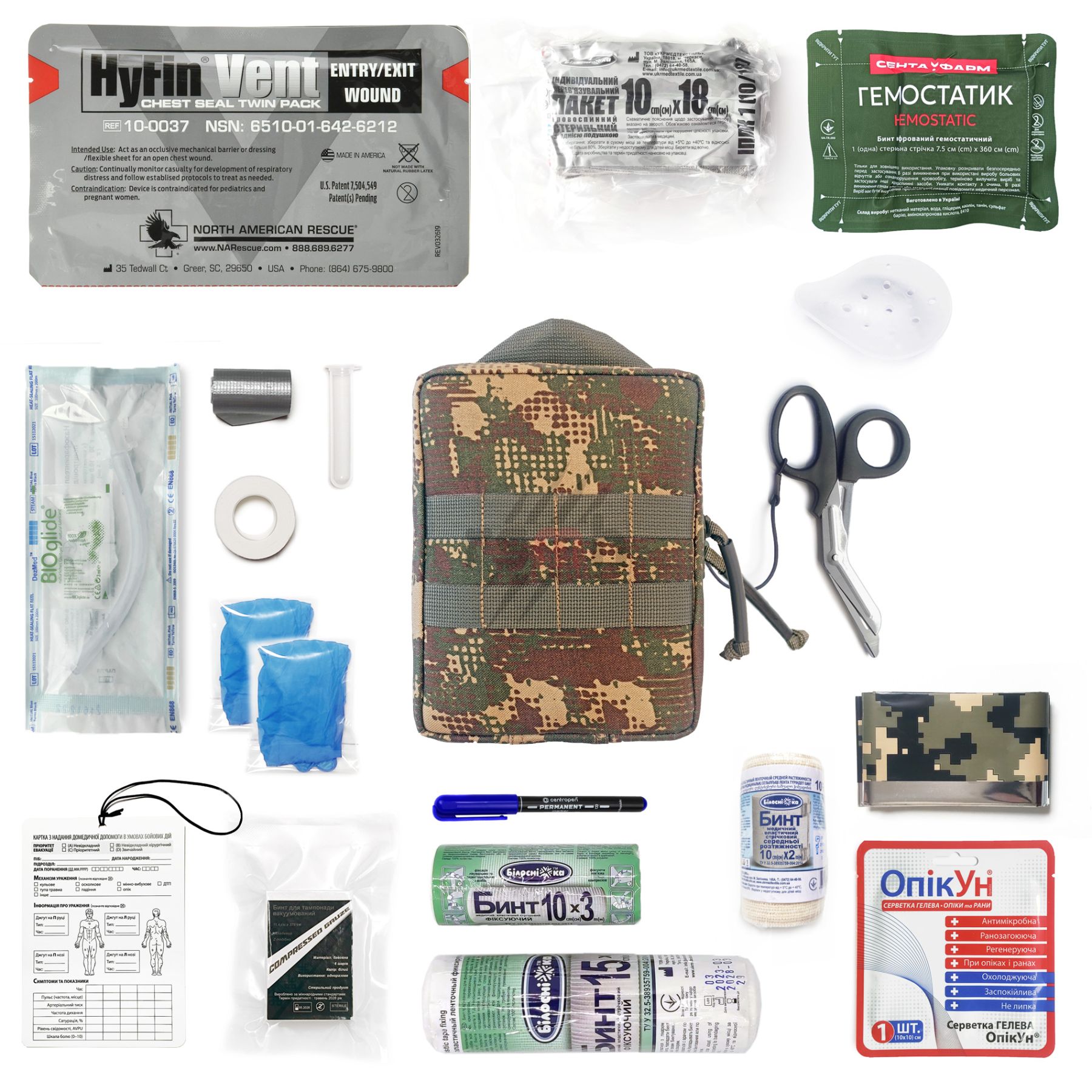 Універсальна індивідуальна тактична аптечка розширеної комплектації без турнікета(19 компонентів)
